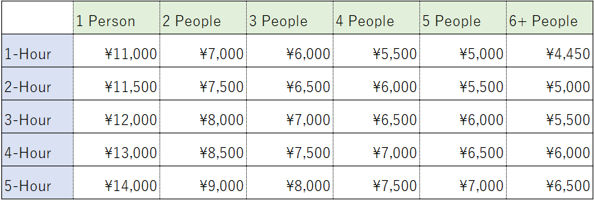 Price per Person Adult: ¥5,000