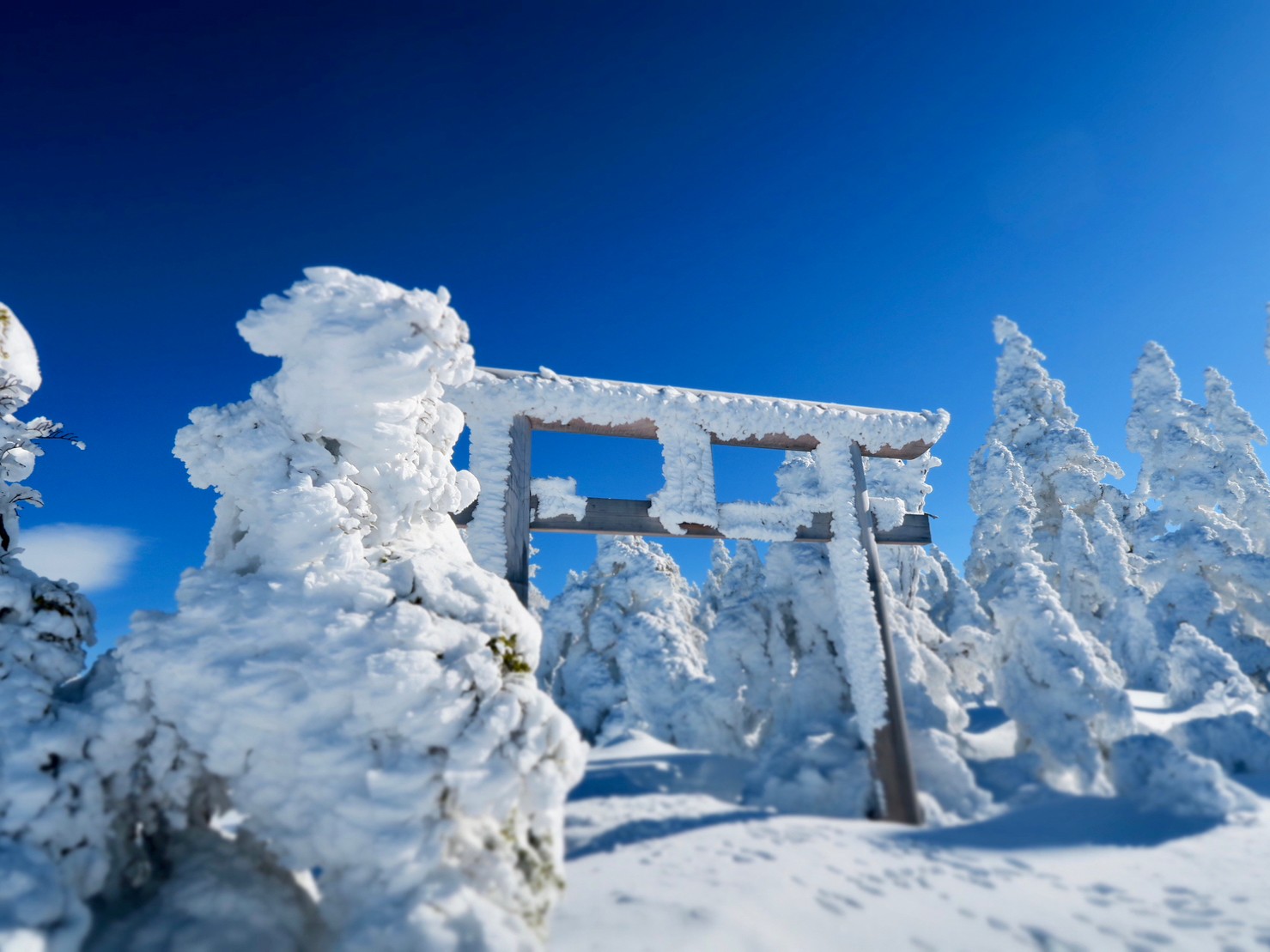 リフトを乗り継いで横手山山頂へ。早めの昼食後、スノーシューハイキング開始。まずは歩いてすぐの横手山(2,307m)へ。360度の大展望と樹氷の景色をお楽しみください。その後、渋峠を経由して歩いて下山します。途中冬季閉鎖された国道や森の中を歩き抜きますので、体力に自信のある方限定でご案内いたします。