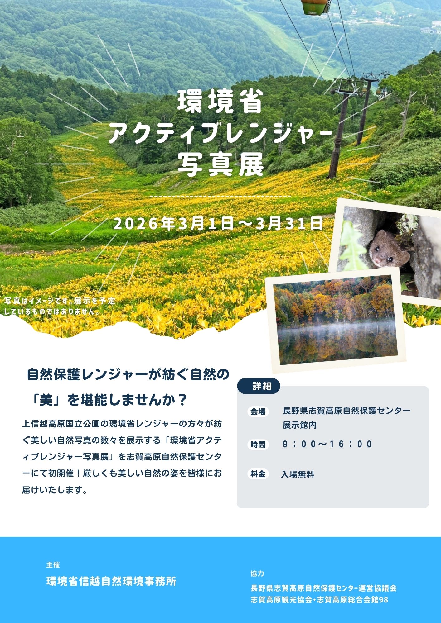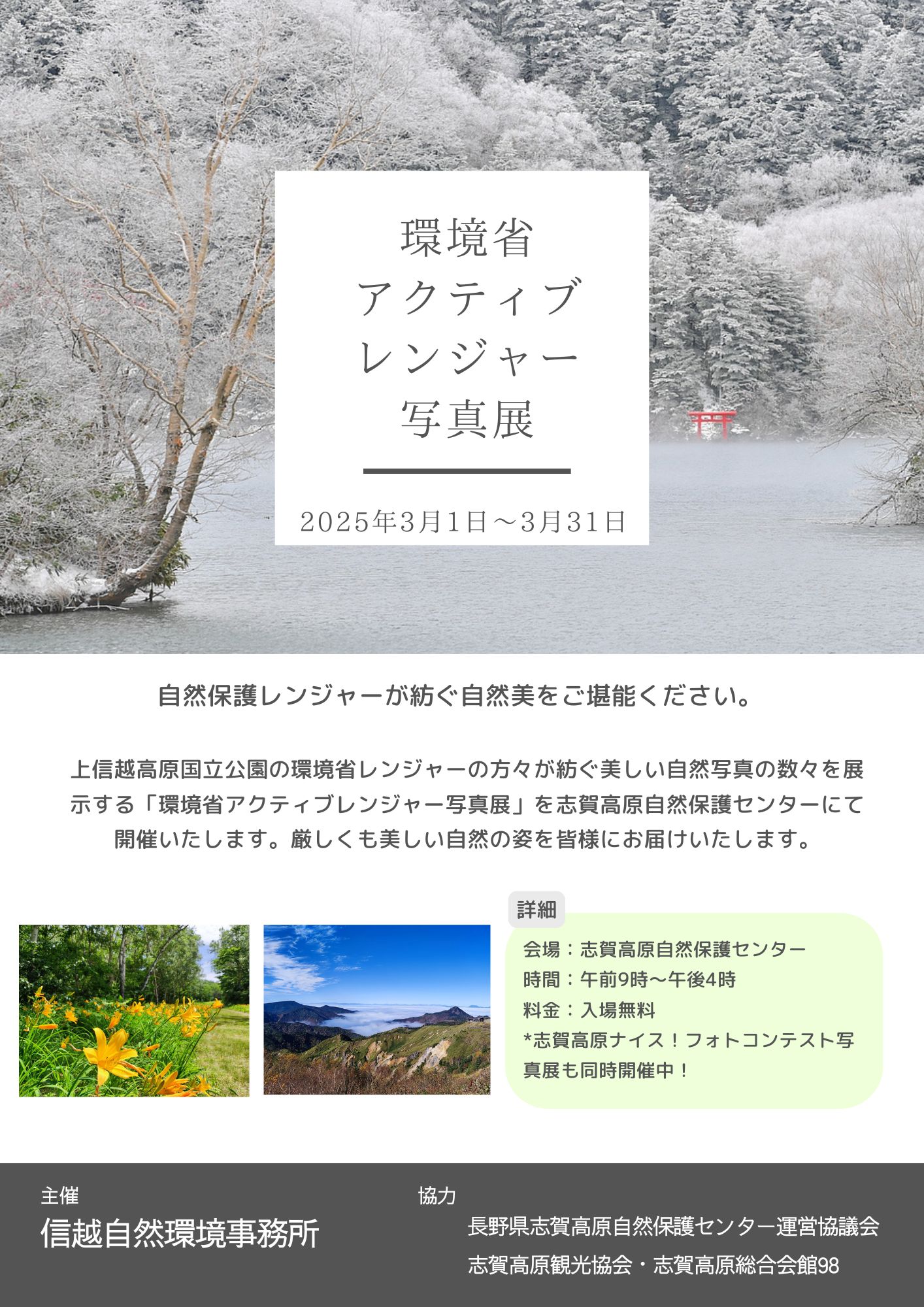 上信越高原国立公園の環境省レンジャーの方々が紡ぐ美しい自然写真の数々を展示する「環境省アクティブレンジャー写真展」を志賀高原自然保護センターにて初開催!厳しくも美しい自然の姿を皆様にお届けいたします。
