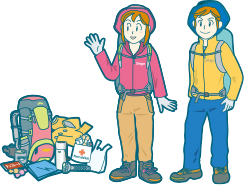 - 長袖、長ズボンが基本です。 春先や秋は予想以上に冷えることもあります。フリースやセーターなどの防寒具も忘れずに。