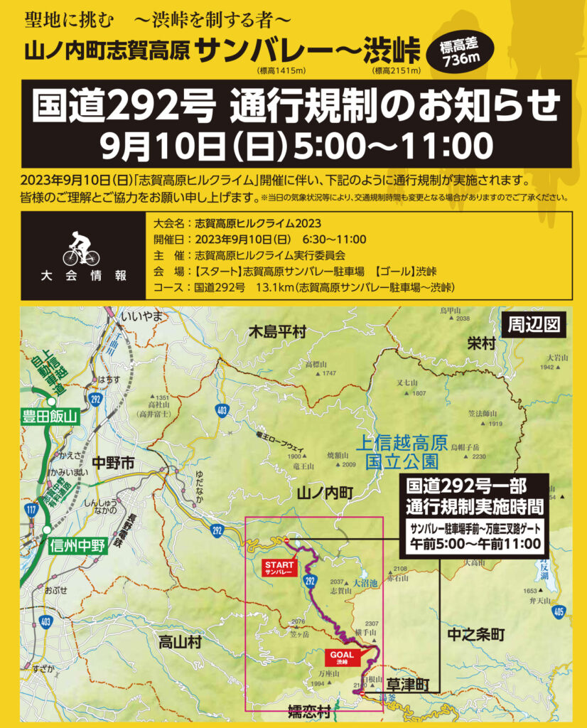 志賀高原ヒルクライム大会開催に伴う交通規制のお知らせ