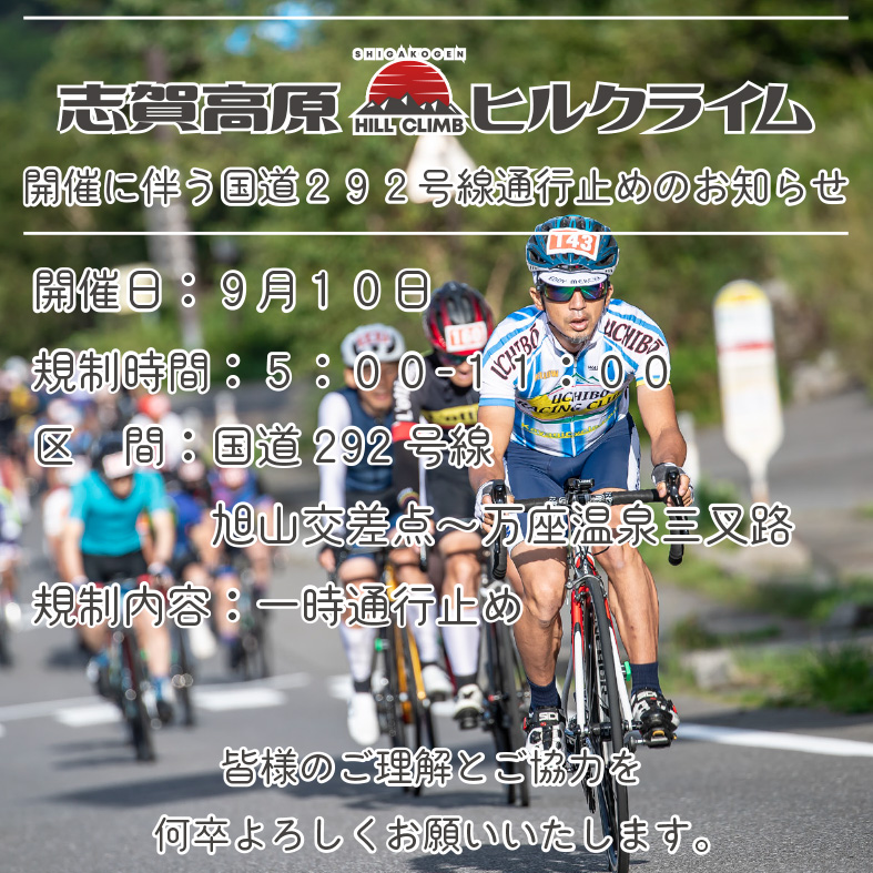 志賀高原ヒルクライム開催に伴う国道292号線の一時通行止めについて