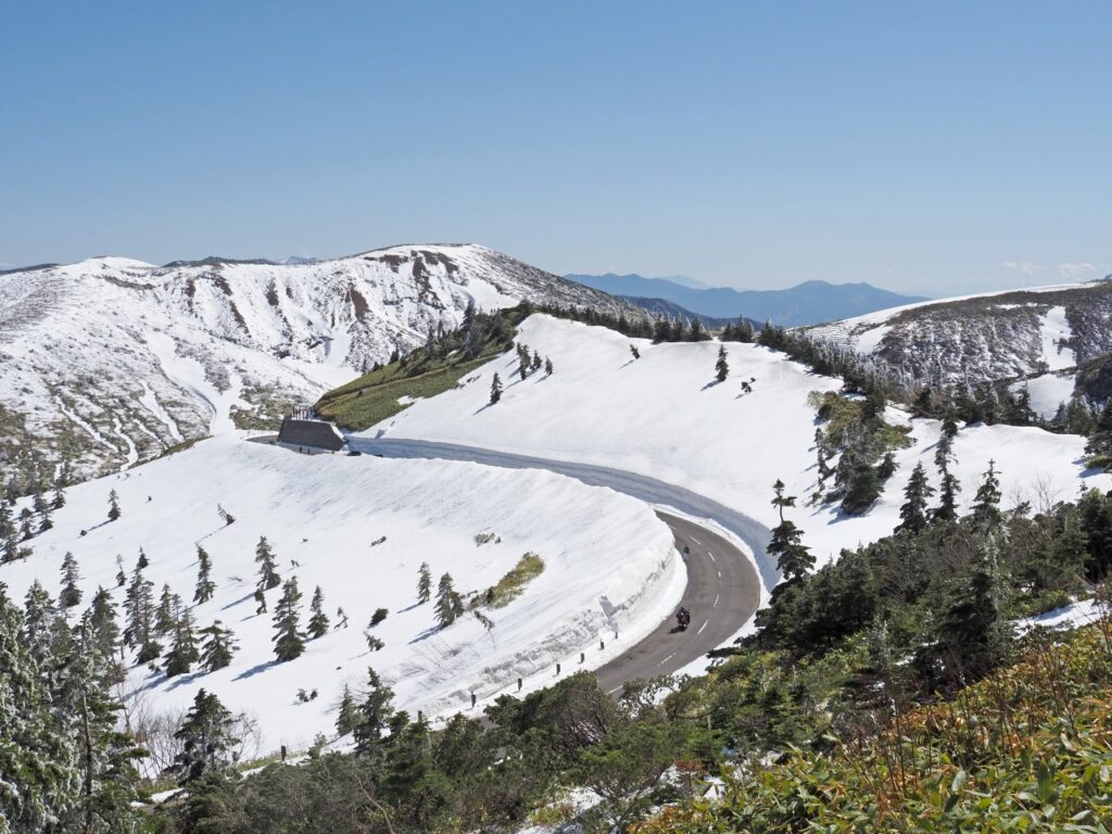 志賀高原を通る道路は、一部区間で冬の深い雪のため通行止めとなります。