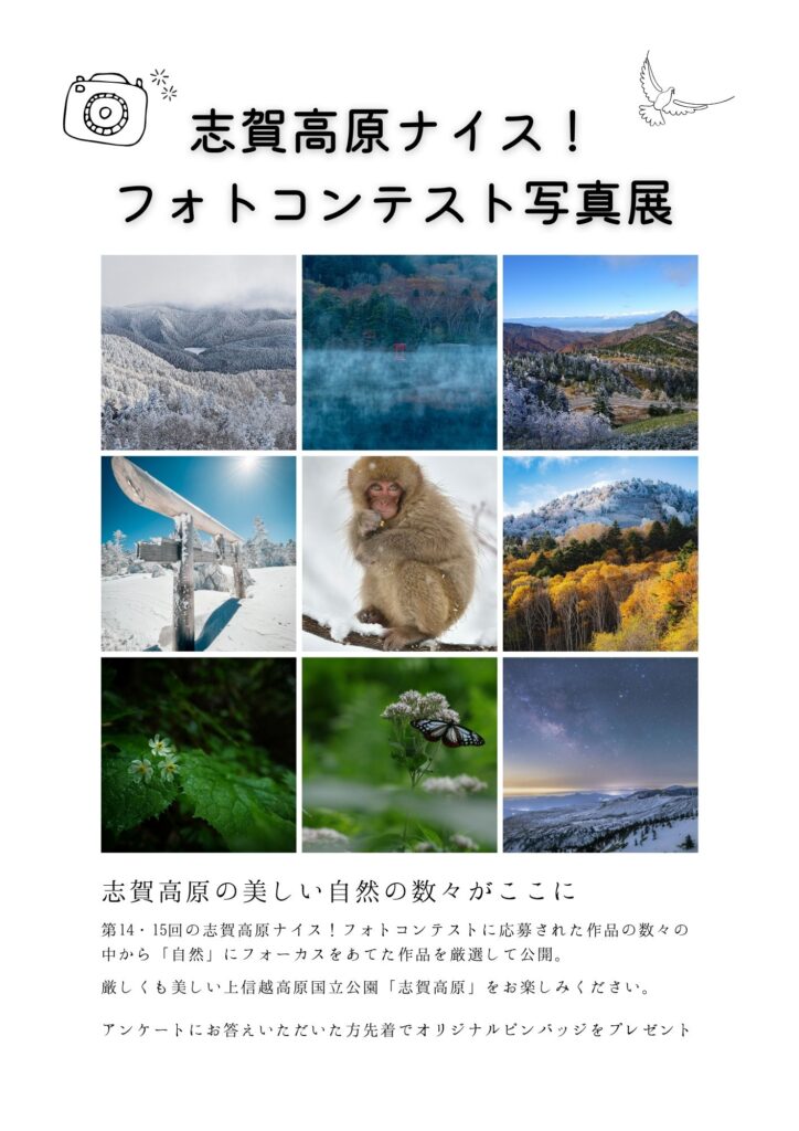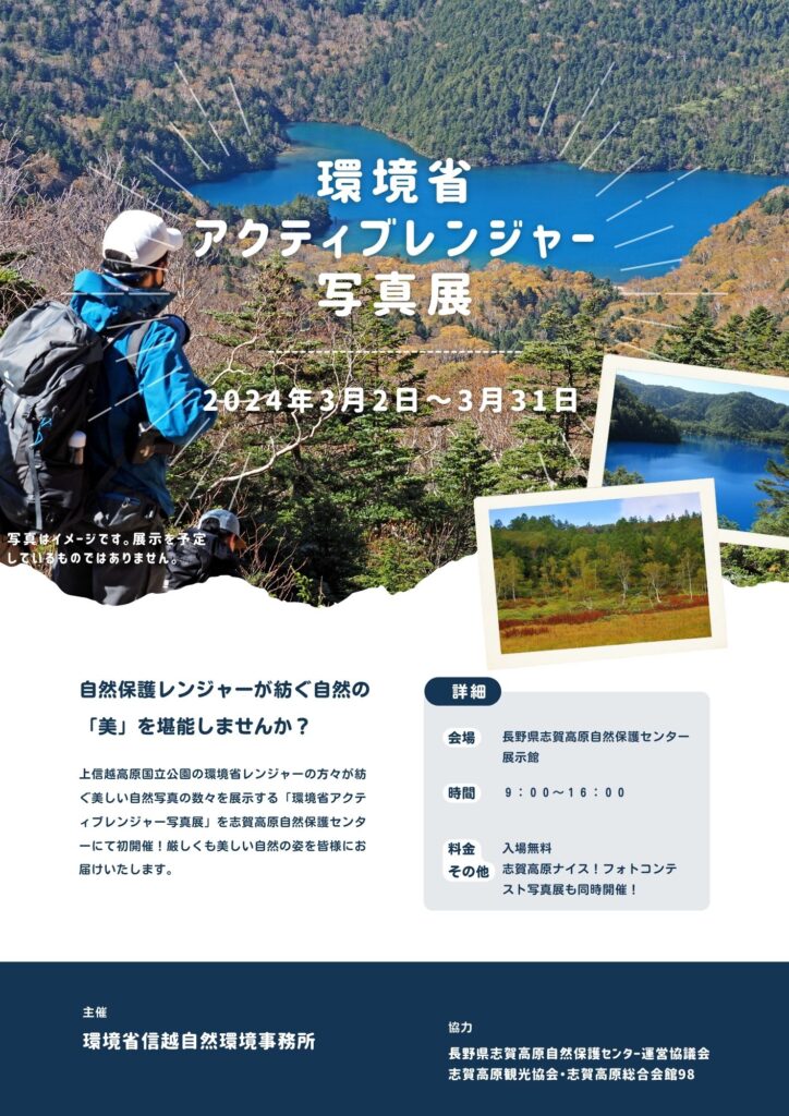 2024.03.05 写真展開催のお知らせ 3月2日より志賀高原自然保護センター内にて、志賀高原ナイス!フォトコンテスト写真展と環境省アクティブレンジャー写真展を同時開催しております。 厳しくも美しい志賀高原の自然美の作品の数々を掲載しております。 皆様のご来館心よりお待ちしております。 イベント情報は>>>こちら