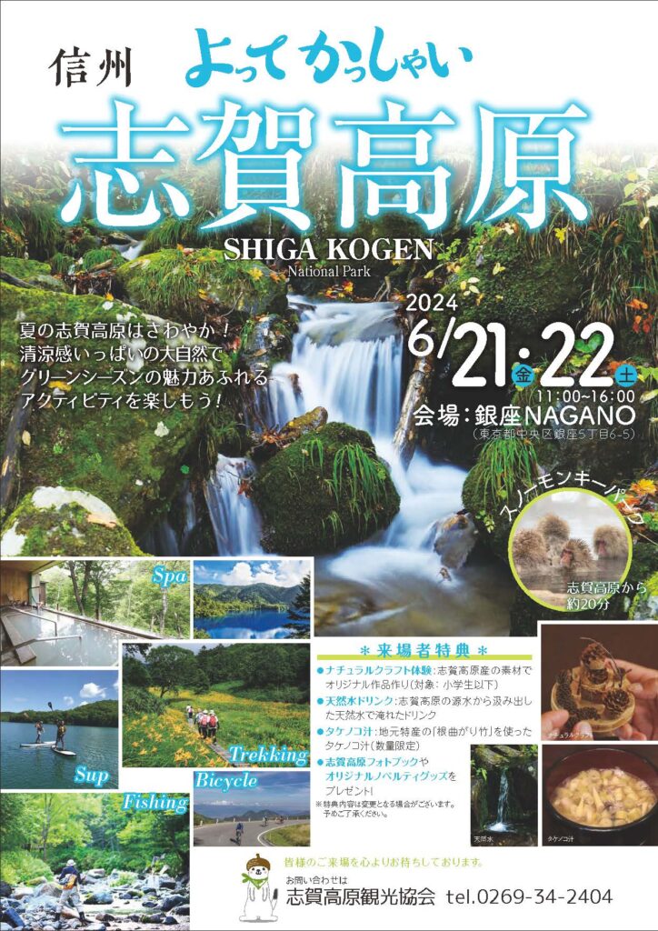 6月21・22日に、東京 銀座NAGANOにて行われる「よってかっしゃい志賀高原」へ志賀高原ガイド組合も出展協力させていただきます。