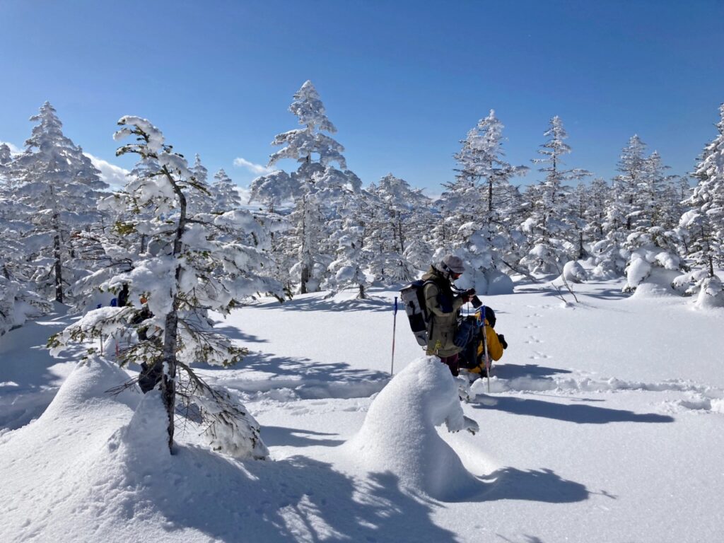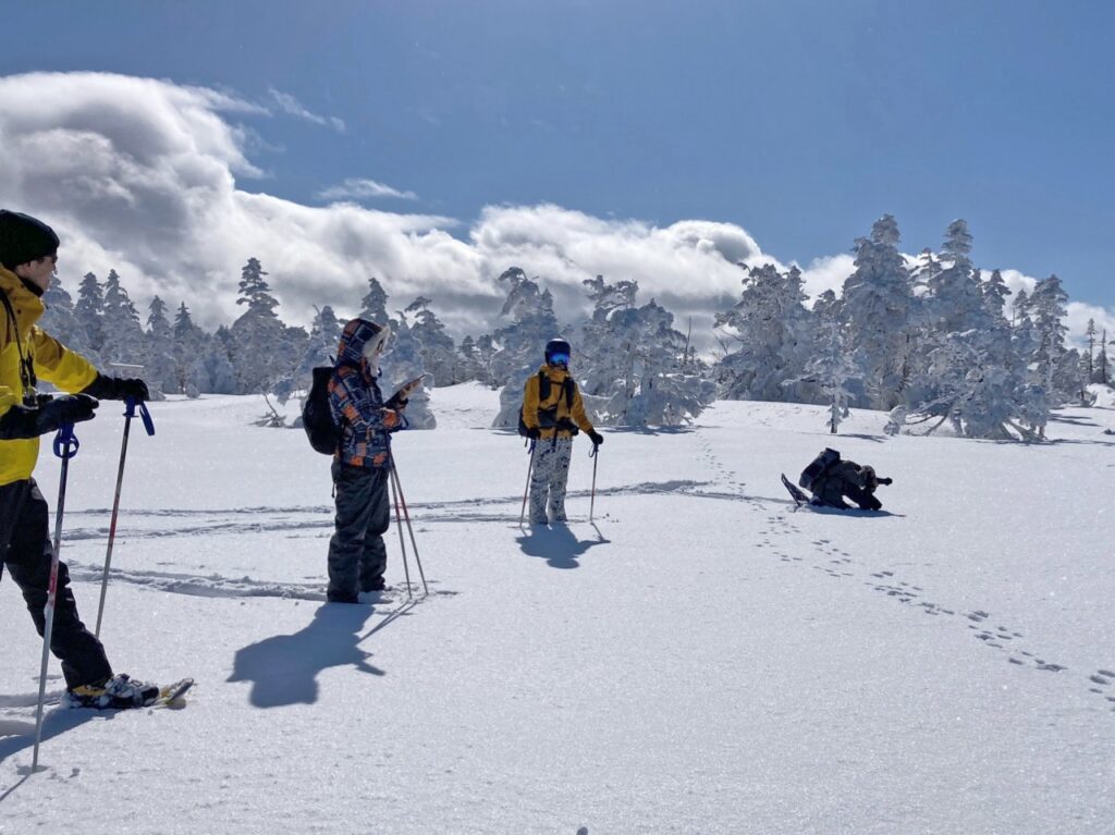 2023.02.06 体験/Experience冬/Winter景色/Scenery 楽々山頂スノーシューガイド9 2月4日 グループでご参加の皆様を、山頂コースへご案内!天候に恵まれた山頂で皆さん本格的なカメラで写真撮影📷前日までの降雪で一面雪景色⛄🏔絶好のロケーションで皆さん笑顔でお楽しみいただきました😊