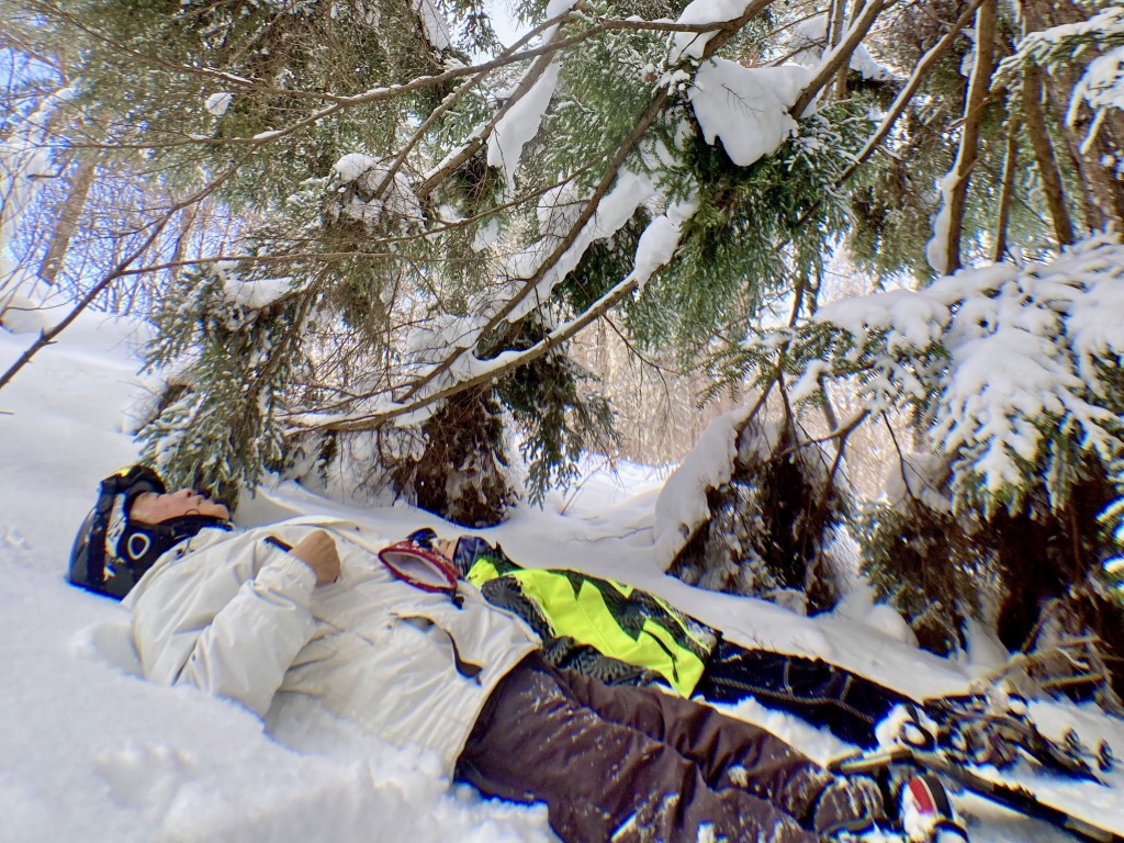 この日は、キノコのマンションや、盆栽のような松の赤ちゃん、志賀高原じゃ珍しく無い「幻のきのこ」に出会い、フッカフカの雪に寝っ転がったり、時々現れる青空には何度も感動しました!