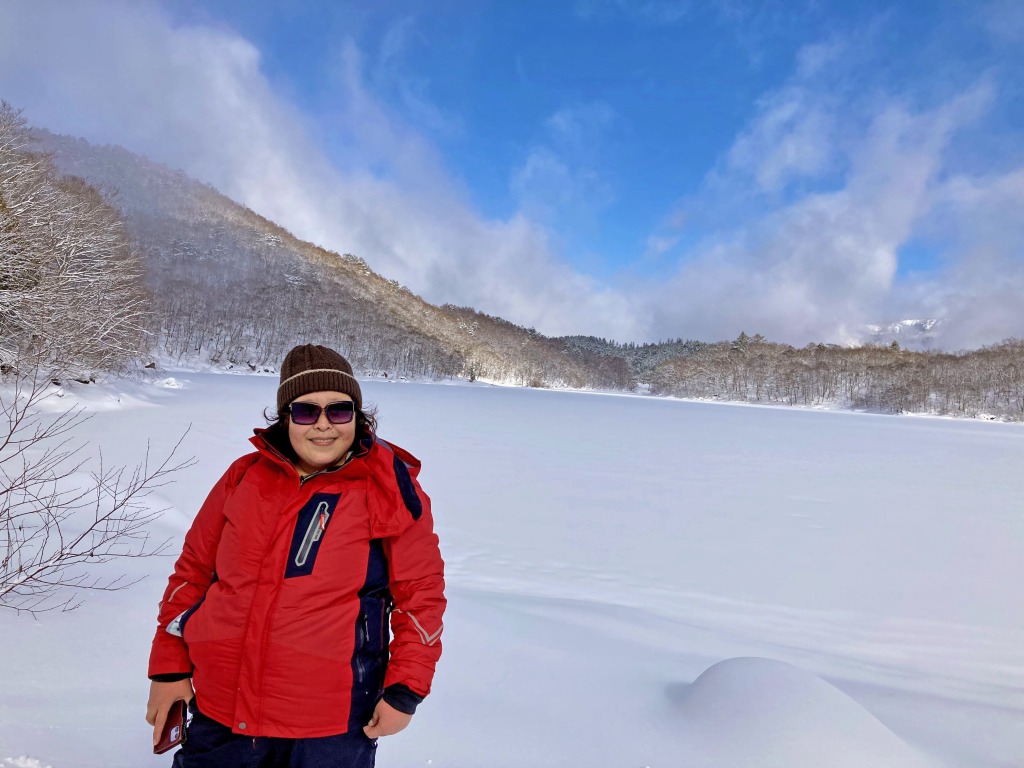 She had the snowfield all herself and enjoyed strolling in the forest where skiers never come in.