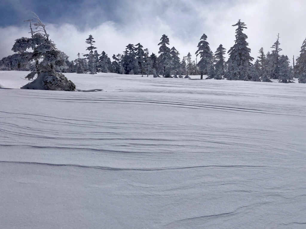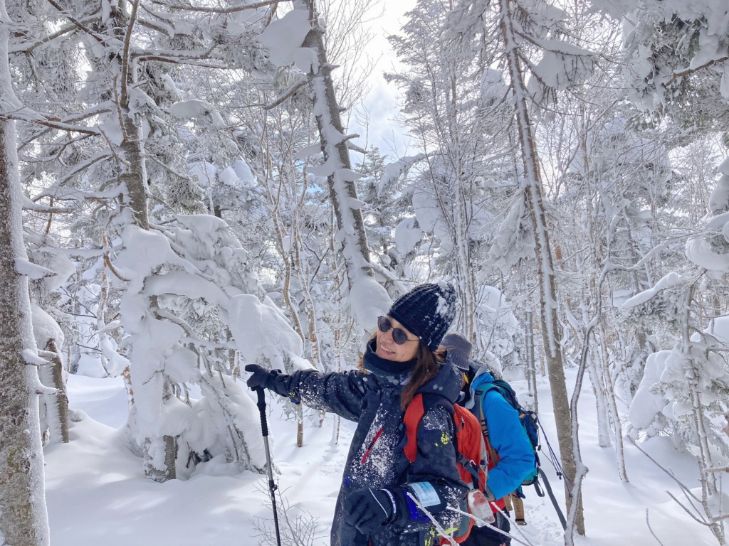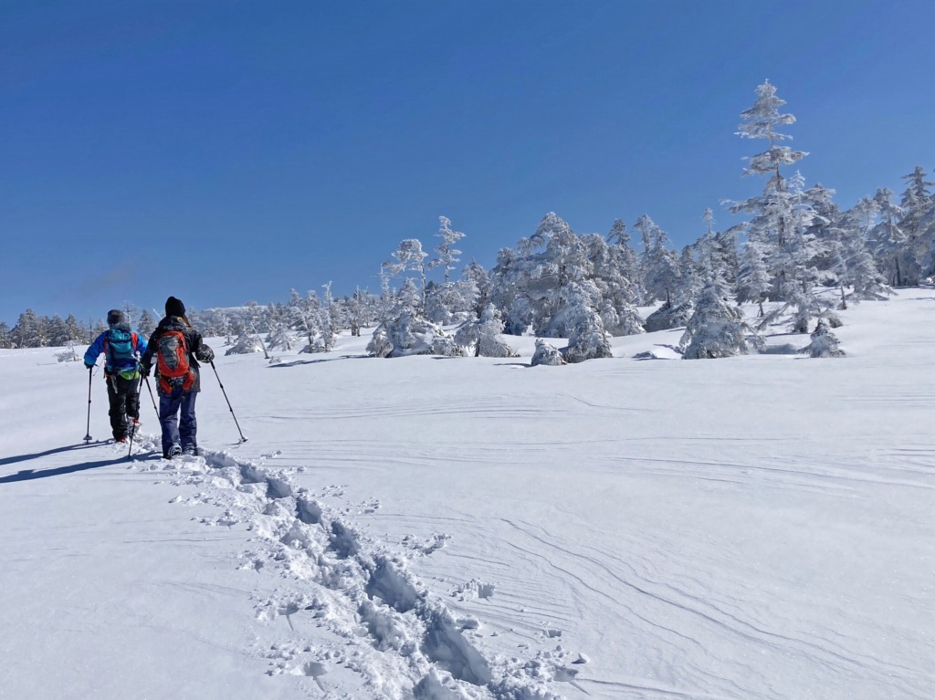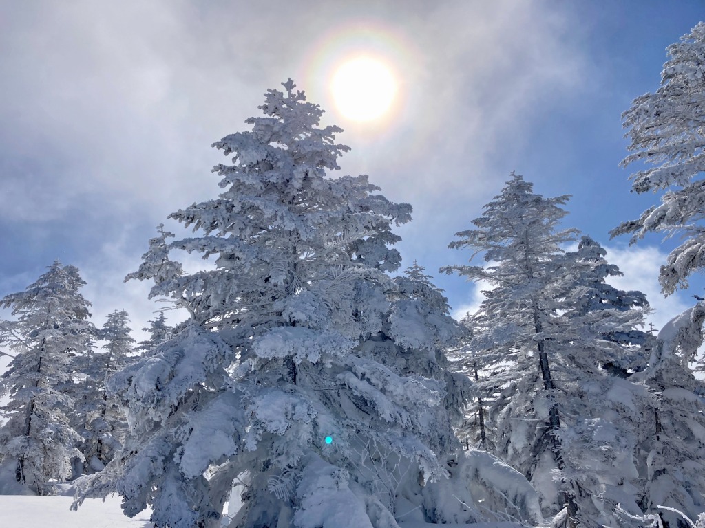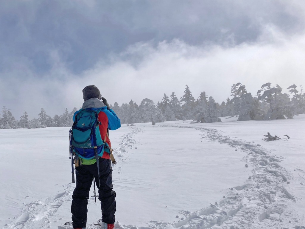 歩き始めはガスっていたのですが、森を抜けて雪原に出る時には青空が見えて旦那様とさらにテンション⤴