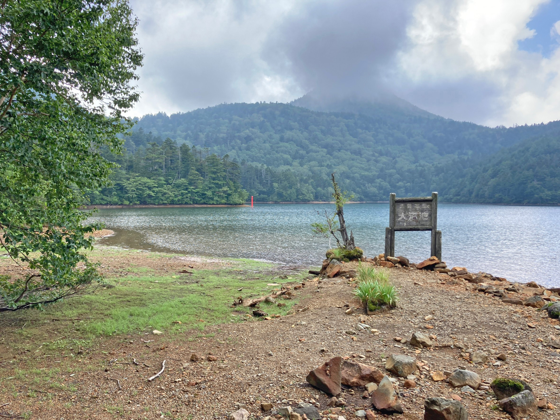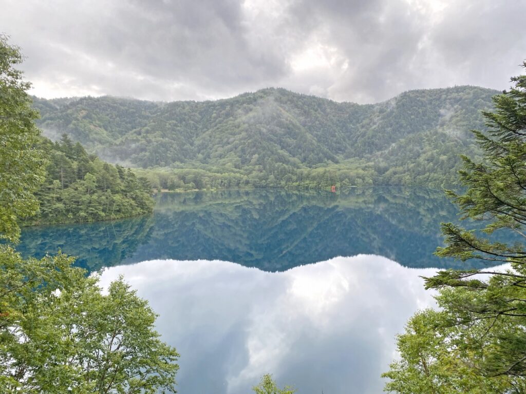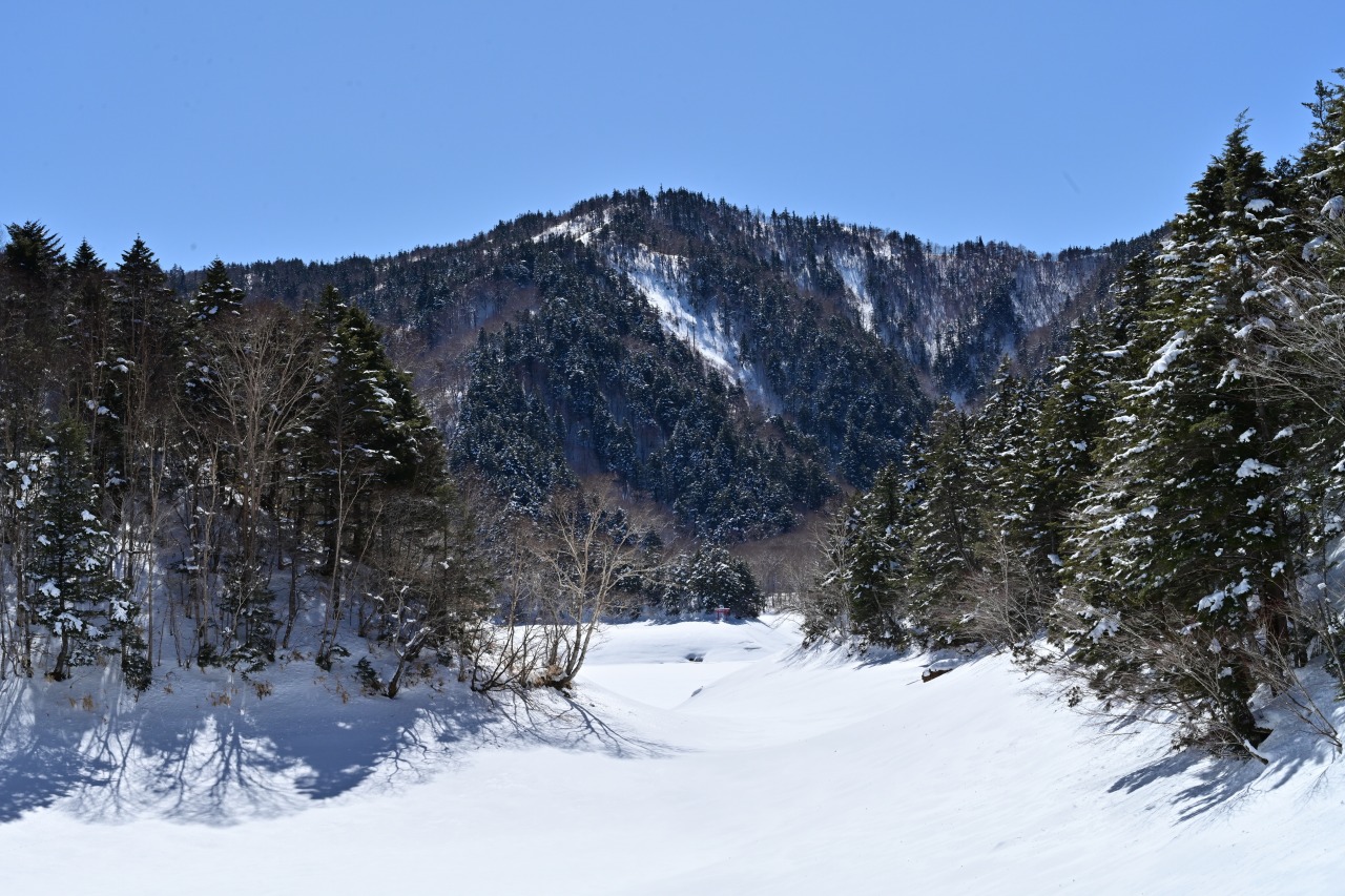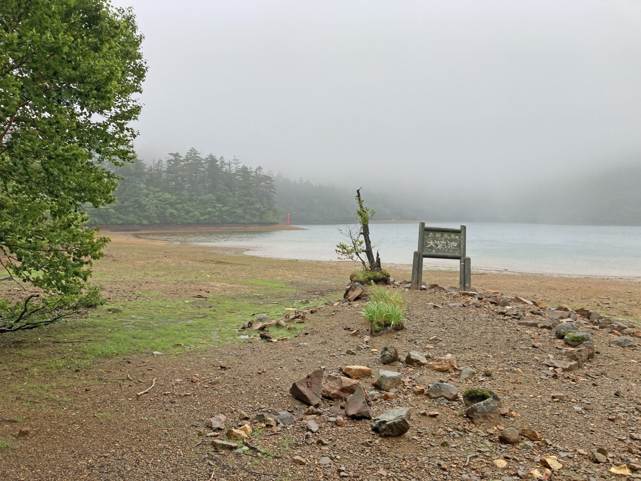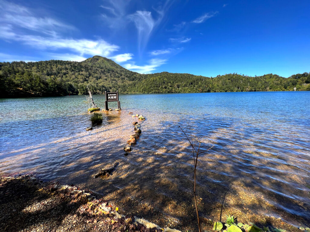 ※水位減少に伴い鳥居や看板のあたりが干上がっていますが、ここは普段水がある場所にあたりますので絶対に立ち入らないでください。環境保全のため皆様のご理解とご協力をお願いいたします。