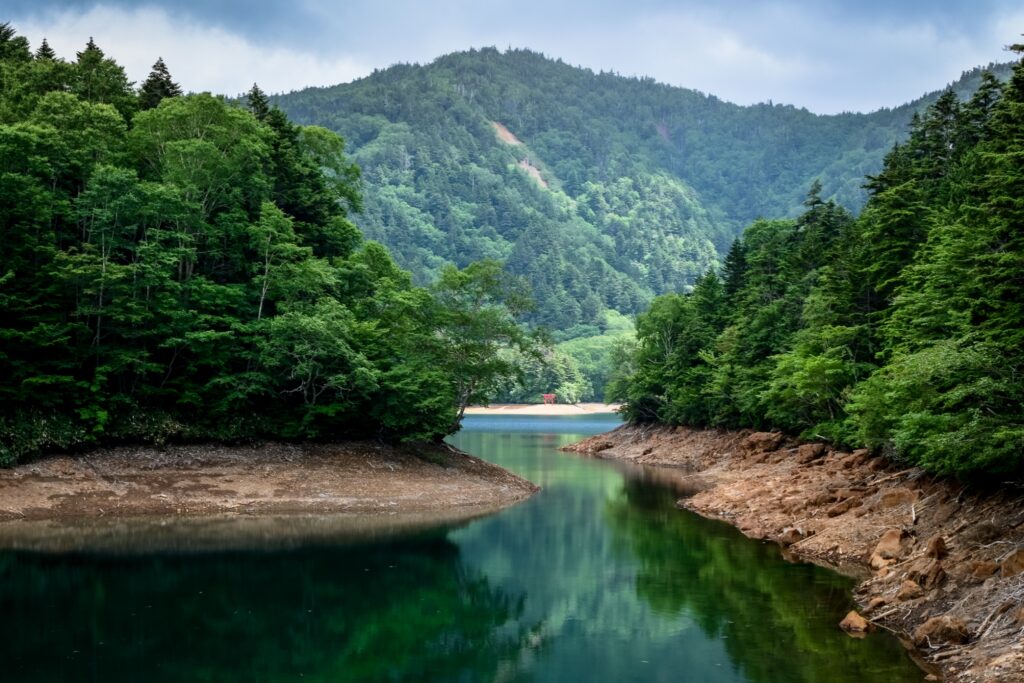 8月31日現在、水位は満水に戻りました。10月まで継続してモニタリングは続けてまいります。秋の紅葉シーズンをお楽しみに!