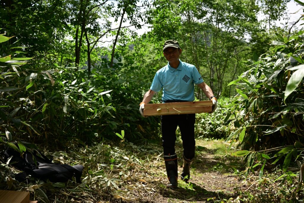 The Shiga Kogen Guide Association is conducting inspections of mountain hiking trails to ensure everyone can safely enjoy their trek. Additionally, we are carrying out repairs on the trails to the extent possible. Recently, with the assistance of ParksProject, a partner company of the Ministry of the Environment, we successfully completed repairs on a section of the bridge (between Hyotan Pond and Kido Pond) using timber transported by them.