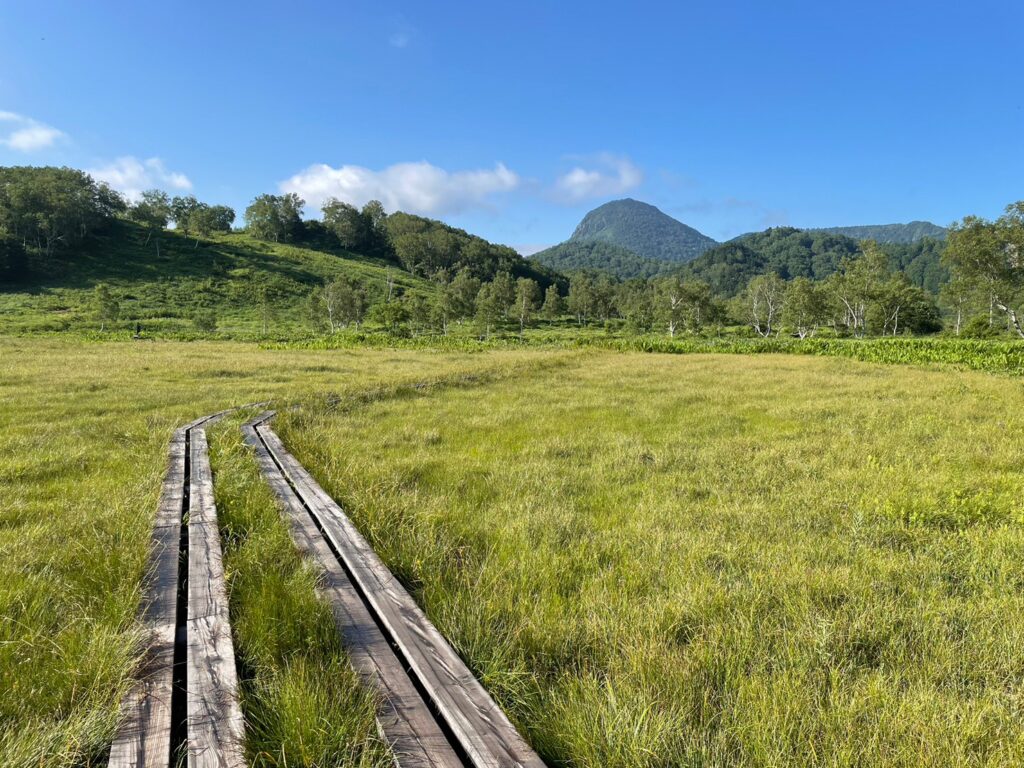 We would like to guide you through the summer scenery of the Tanohara Wetlands. The cool breeze blows through the wetlands, and the Marsh Marigold (Umebachi-sou) has started to bloom.