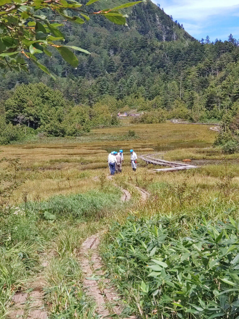 四十八池湿原の木道修繕工事が始まりました/The maintenance work on the boardwalk at the Shijuhachi-ike Wetland has begun.