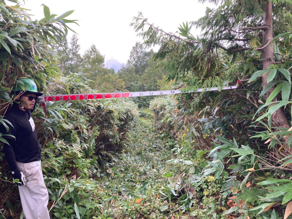 This maintenance work, undertaken by the Shiga Kogen Guide Association, continues to be exceptionally challenging and will persist until mid-October. Our next phase will tackle the Mt.Kasaboshidake to Mt.Eboshidake section, where the bamboo grass growth is particularly dense, nearly obscuring the hiking trail.