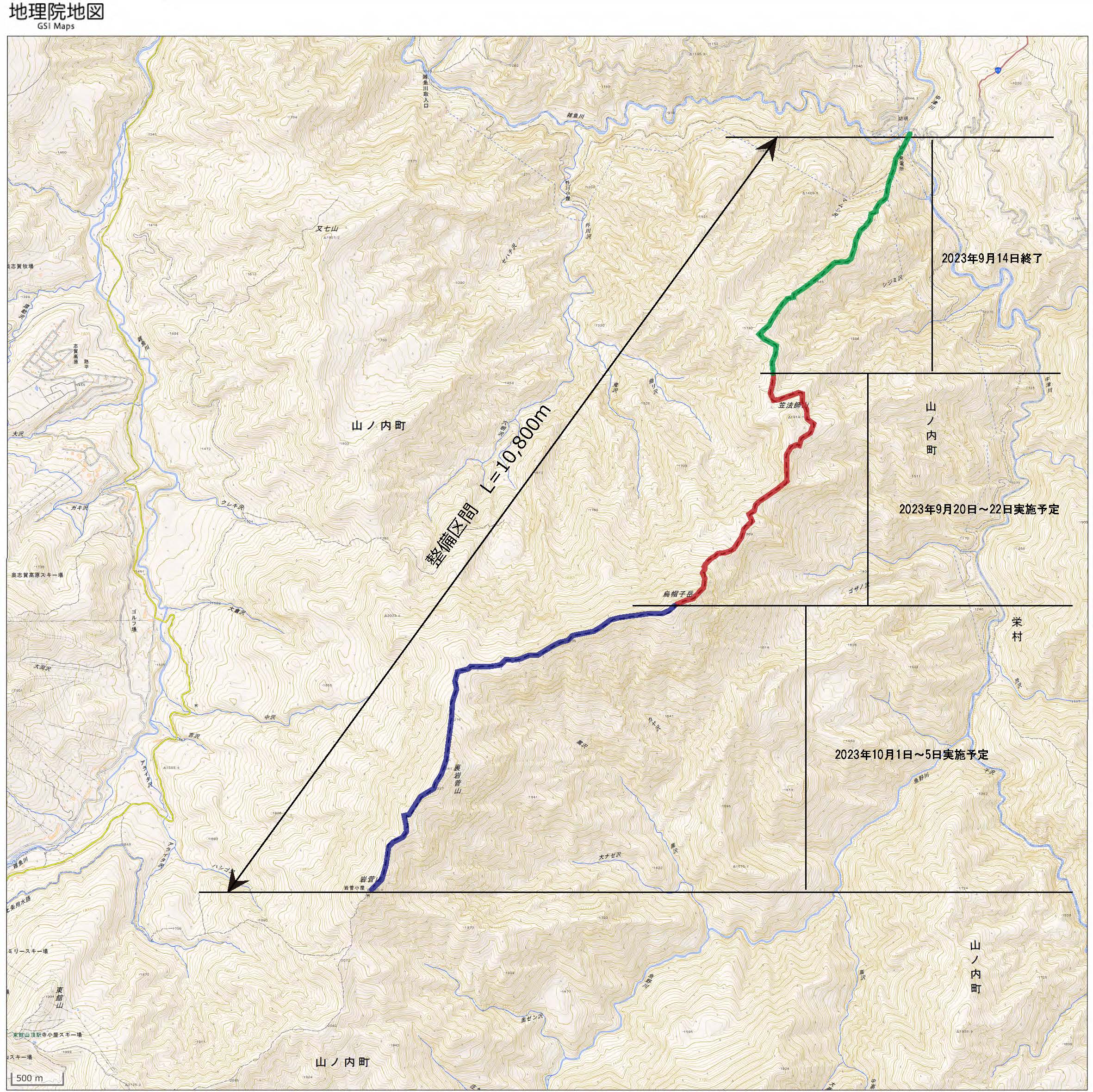 今回は切明→笠帽子岳手前区間の作業が終了。
