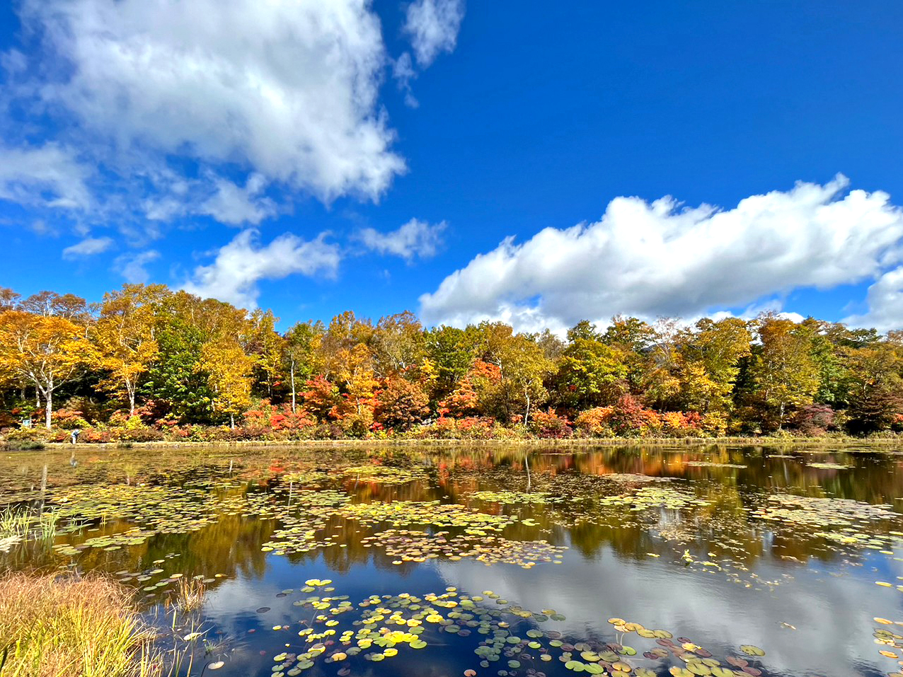Today, I guided a Shizentansho course at Shiga Kogen, where we were overwhelmed by the breathtaking autumn leaves 🍁. It was a luxurious guided tour, with the vibrant foliage right in front of us. It looks like the peak of the autumn leaves will continue for the rest of this week.