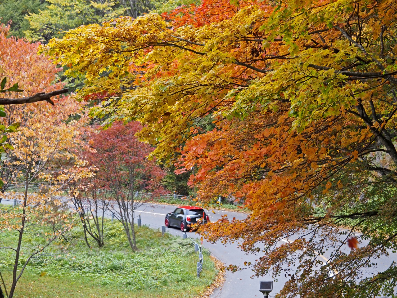 The Kanmandaki Falls, the last spot to be painted with autumn leaves on the Shiga Kogen, are now in their full glory. The entire area around Biwaike Pond is also beautifully adorned with vibrant colors, with the lakeshore route of Biwaike Pond being particularly stunning. Since this spot is a bit off the beaten path from the national highway, it’s a hidden gem. Let’s hope it can be enjoyed until next weekend.