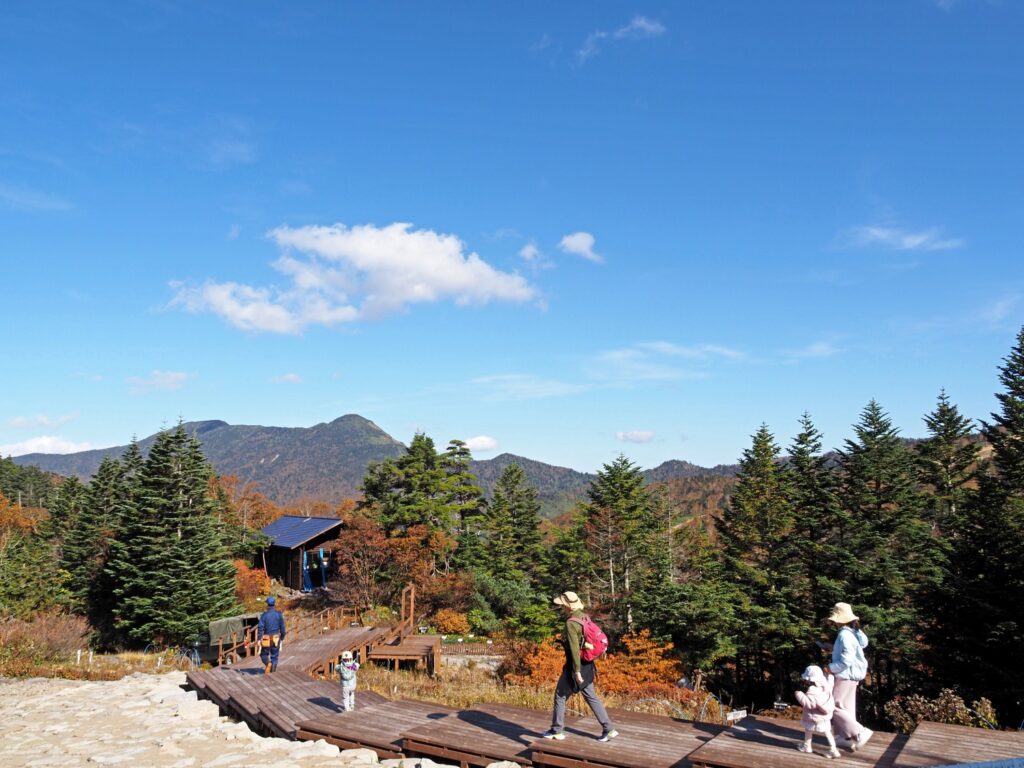 山頂からは志賀高原全体を見渡すことができ、秋のさわやかな風がほほを撫でていきました。