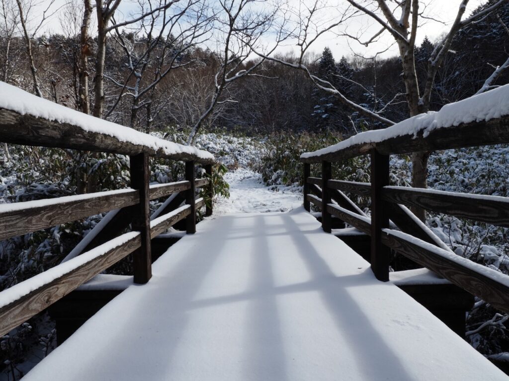 Snow-covered landscapes transform the picturesque Ōnuma Pond into a scene of serene beauty. In the upcoming season, the roads leading to this enchanting destination are sealed by blankets of snow, rendering it normally inaccessible. A breathtaking sight that can only be captured in photographs, the snow-clad paths create an ethereal ambiance around Ōnuma Pond, turning it into a secluded winter wonderland. 🏞️❄️📷