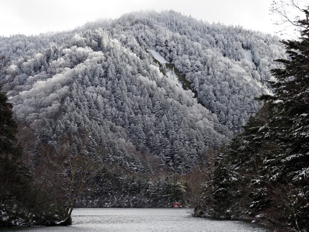 雪景色の大沼池(おおぬまいけ)