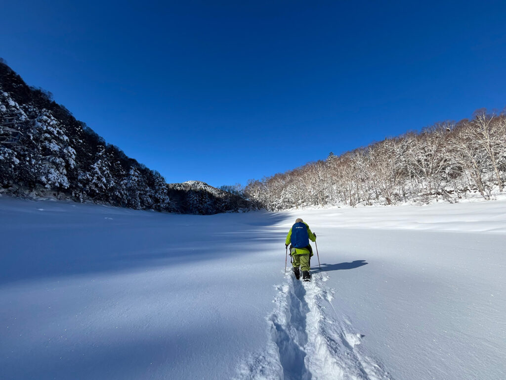 日に日に少しずつ積雪も増してきたおかげで、今日は今シーズン初の池の上の縦断に成功🙌