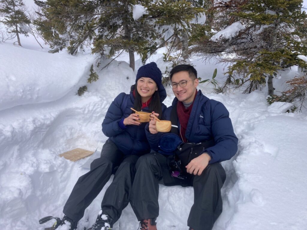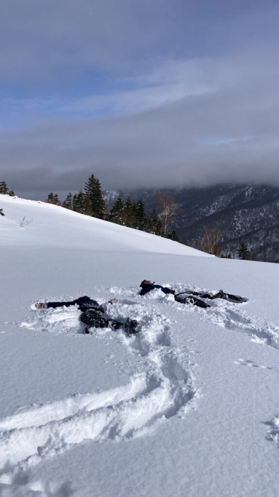 This time, we had the pleasure of guiding a delightful duo who traveled all the way from Singapore on the Higashitateyama course ⛰. Thanks to recent snowfall, the conditions on the mountain’s summit have improved, allowing our participants to fully enjoy the experience with their entire bodies ⛄. The snow accumulation is now more than sufficient, so everyone can relax and enjoy the adventure without any concerns.