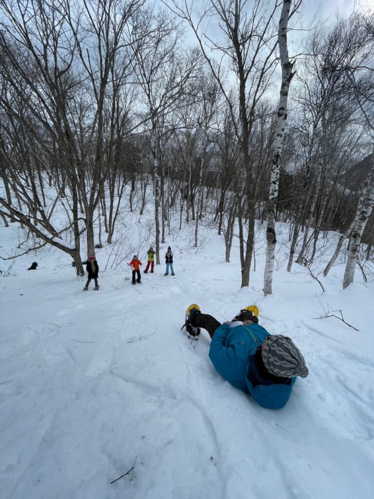 雪の上でお寿司なんて、素晴らしいチョイスですね。静かな林の中はみなさんの笑い声が一面に広がっていました。