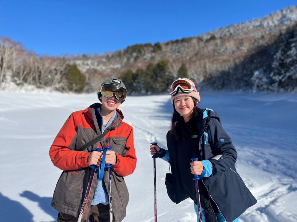 In the afternoon, we accompanied a couple from Australia 🦘 to a coniferous forest at a slightly higher elevation. Crossing a pond that had turned into a snowfield, we advanced through the forest🌲 bathed in the western sun, and they enjoyed a relaxing tea party at a private cafe available only for today☕️