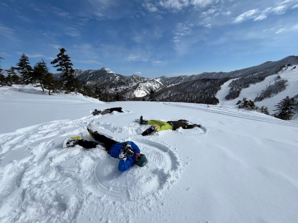 本日のゲストはオーストラリア人のカップル🐨🦘と、台湾🇹🇼からの💃。グループツアで山のてっぺんへお連れ致しました。3人が作った完璧なスノーエンジェル🪽は志賀高原の地上絵として、野生動物たちが見学にきてくれるでしょう!