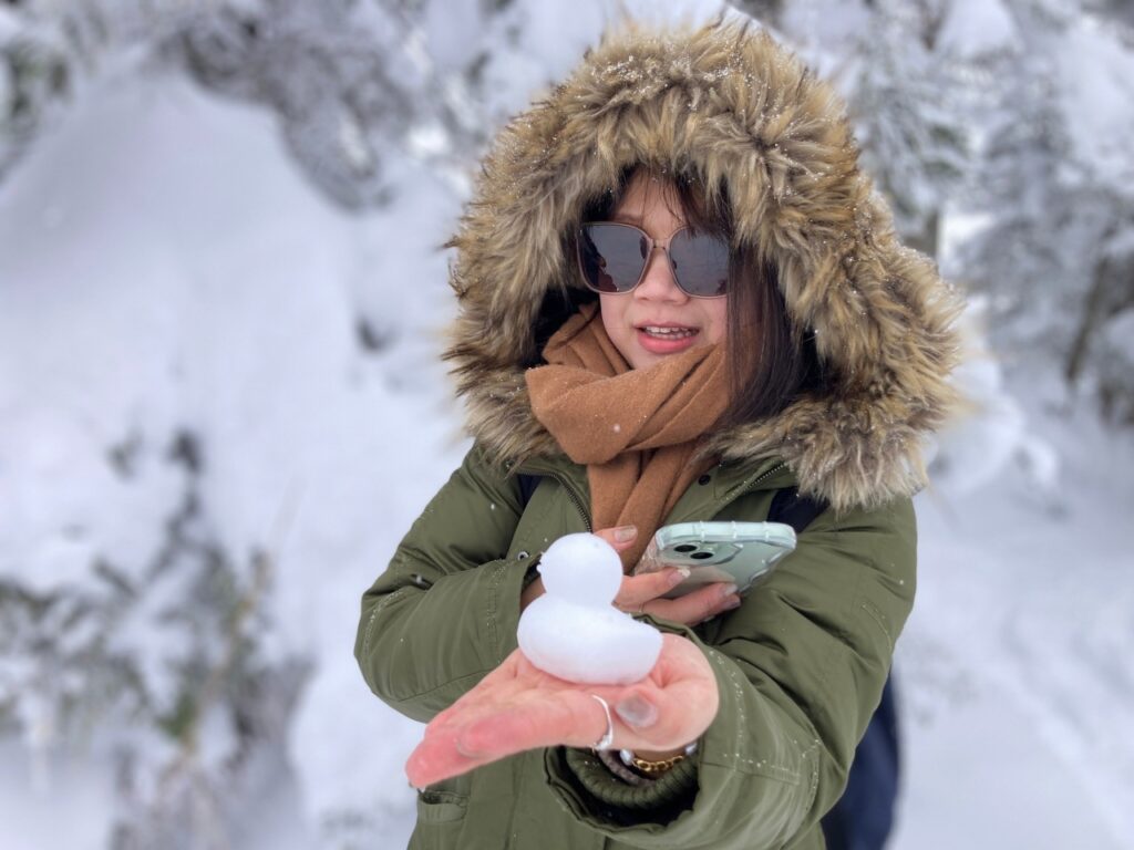 かわいらしい雪のアヒルちゃんも登場してピクニック気分🦆
