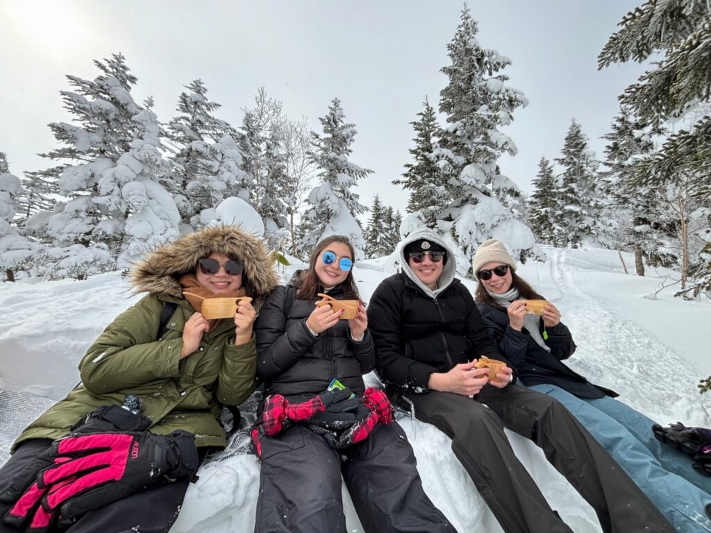 On February 3rd, we conducted a tour to the summit of Mt. Higashidate, guiding a group to the top ⛰✨ We enjoyed a luxurious tea time at a private café we set up at the summit ☕️ Even adorable snow ducks made an appearance, adding to the picnic atmosphere 🦆 It was a calm and peaceful day with gentle weather, allowing everyone to savor a leisurely moment.