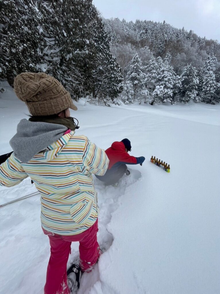 This time, we guided two guests from Osaka on a winter forest exploration tour🌲⛰❄ We enjoyed a soothing moment on the soft snow beds by the tranquil Nagaike surrounded by primeval forests♨ We also lined up the Shiga Kogen Beer Collection in the snow for a photo session📸 Taking Instagram-worthy photos that no one else can imitate is also one of the joys of snowshoe tours⤴
