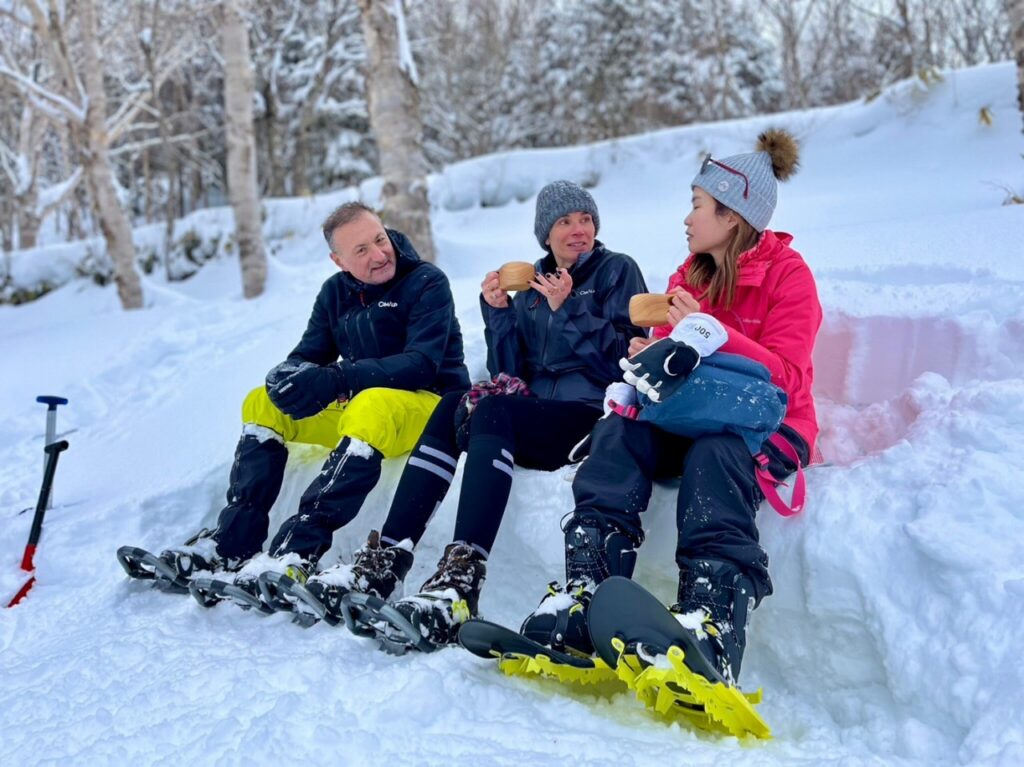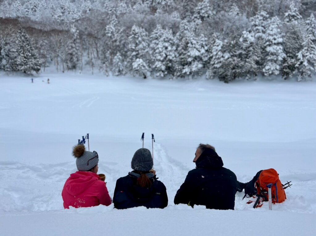 誰も歩いていないルートを選びながら、降りたてふかふかの雪を満喫していただき、今回のプライベートカフェは🇭🇰のお客様のチョイスで雪原(池)が広く見下ろせる場所で楽しんでいただきました!グッドチョイスです👍