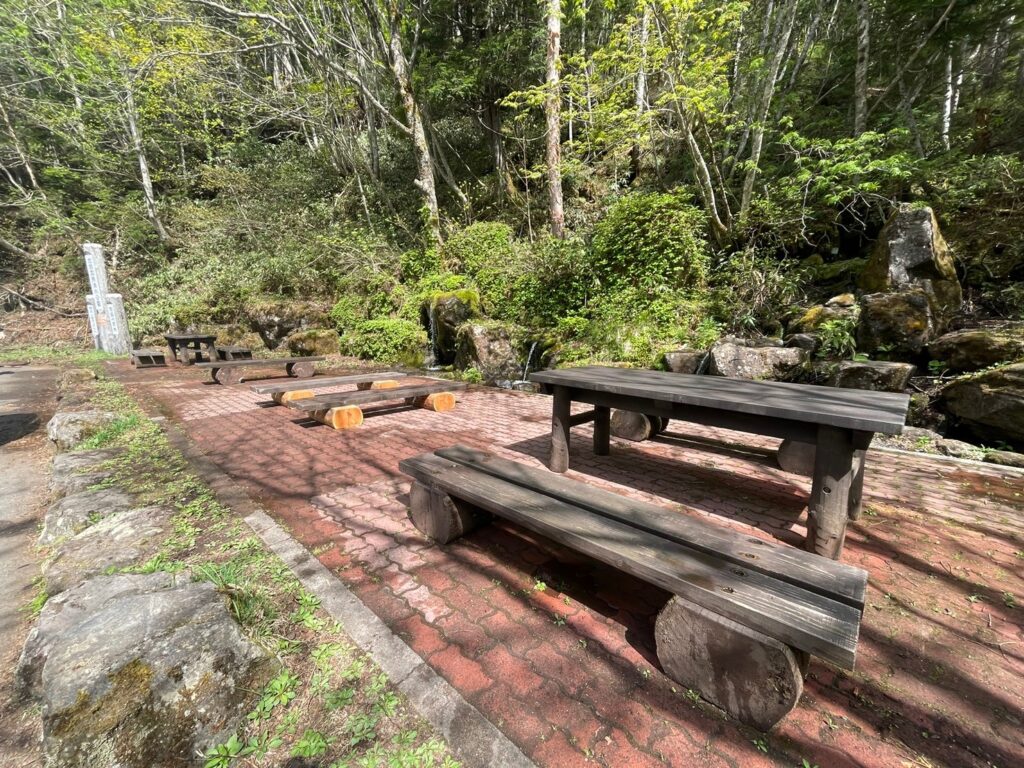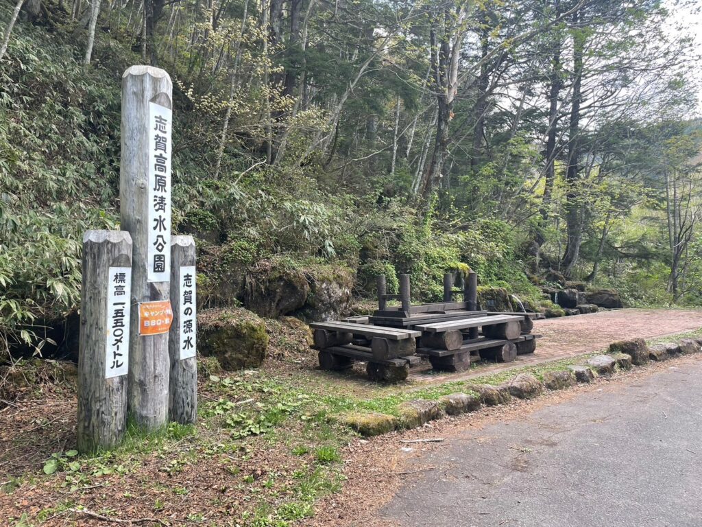 During the winter, we carried out maintenance on the benches and cleaned up “Shimizu Meisui Park,” which had been buried under the snow. This space allows you to relax and enjoy the murmuring of the clear water springing from the source waters of Shiga Highlands. ☕ It is located about 200 meters from the nearby Onuma ike iriguchi Bus Stop and about 100 meters from the Sakasa ike, making it a perfect spot to visit during your Onuma Pond trekking. 💡