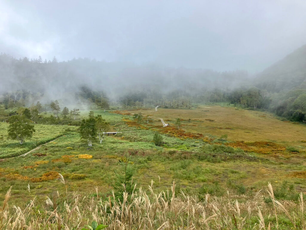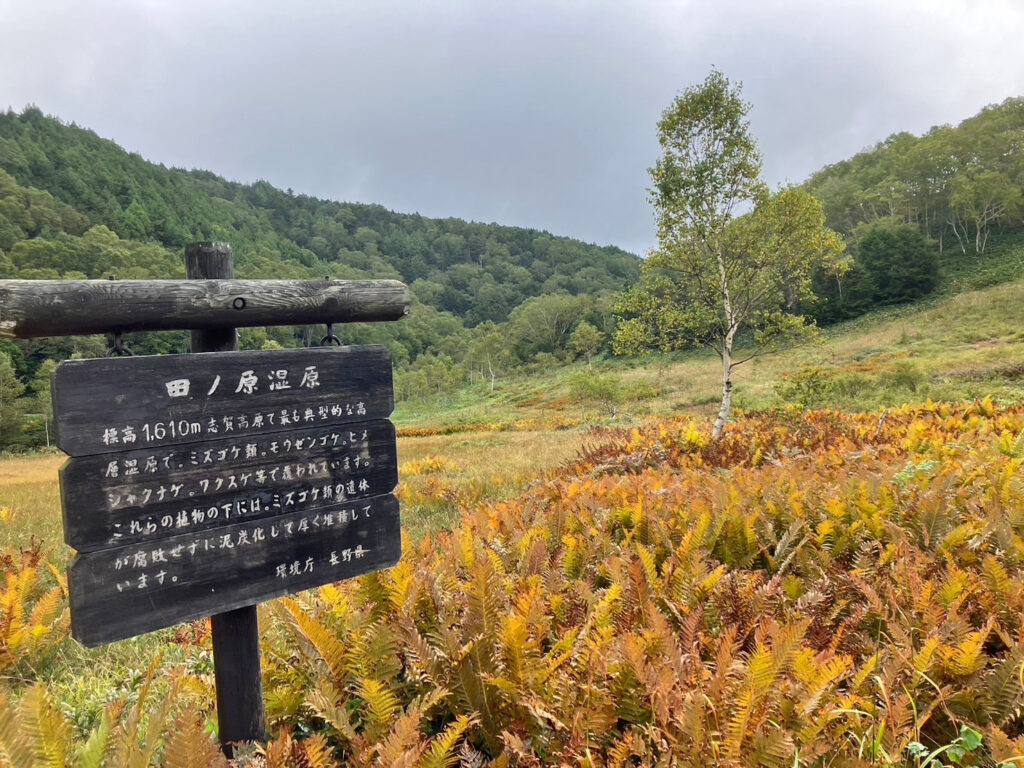 昨年同様少し遅れ気味の紅葉ですが、田ノ原湿原の草紅葉が色付きを始めています💡