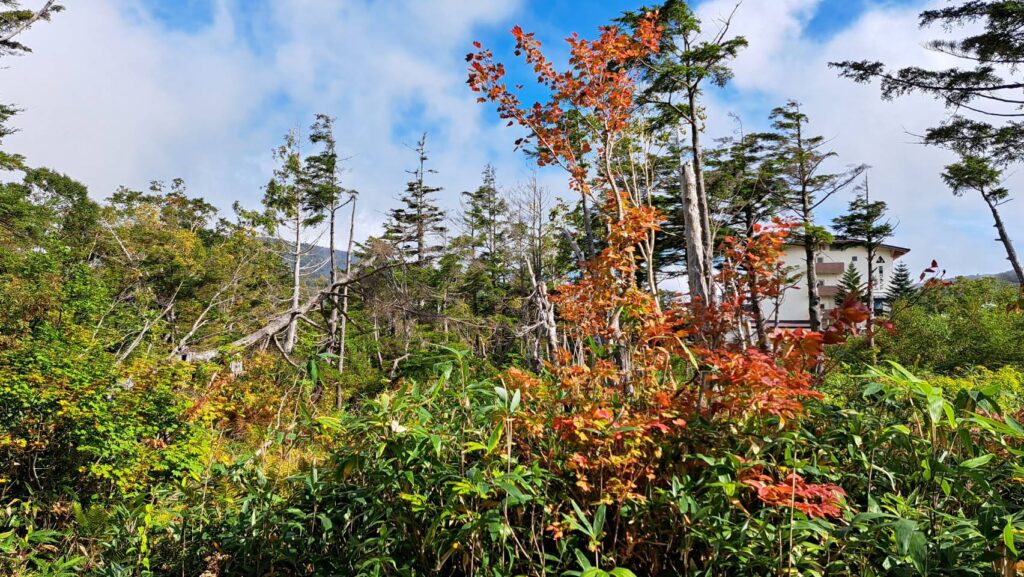 一の瀬湿原の草紅葉はどんどん赤くなってきています🍁木々の紅葉は一部で始まりかけています。