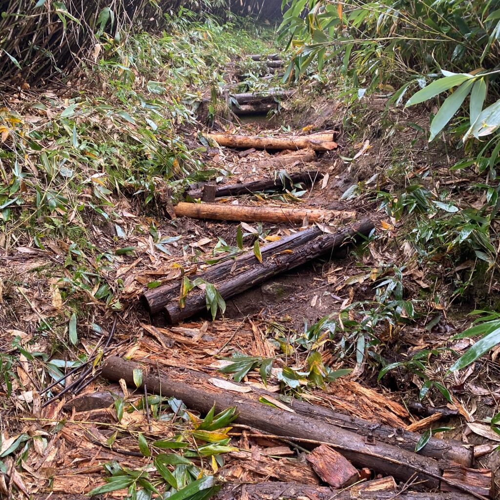本日 鉢山周辺の侵食されたり崩れてしまった登山道整備を、志賀高原で大会もされているトレイルランランナーの皆さんにご協力いただき行いました🏃🏽