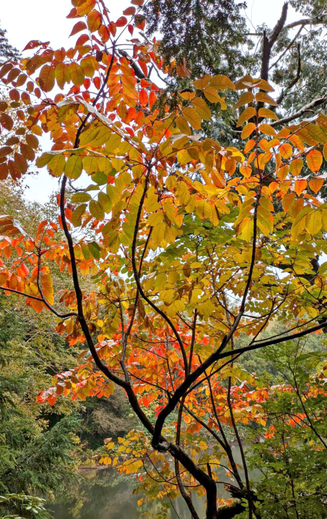 昨晩からの気温の冷え込みと冷たい雨に打たれて、木々の色付きが一層深まってきました🍁