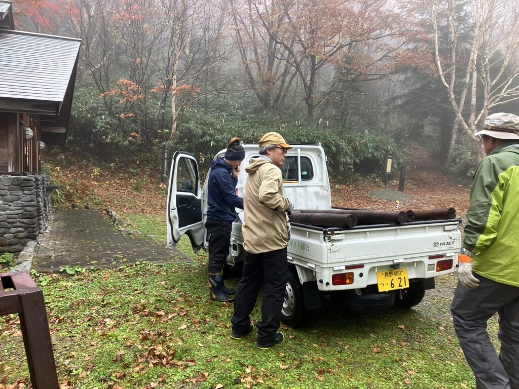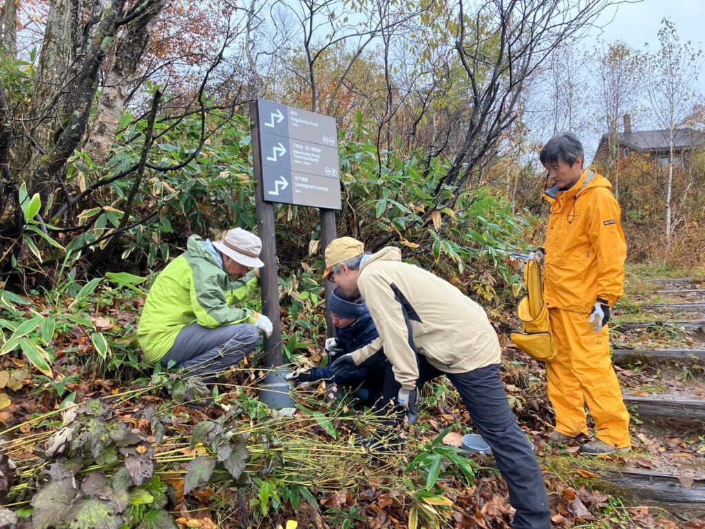 10月・29日の2日間、志賀高原の登山・遊歩道誘導看板の冬前撤去作業を行っております。
