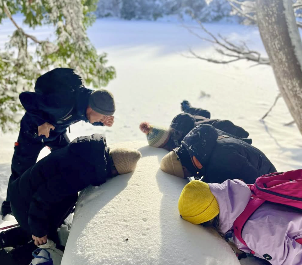 西陽が差し込む幻想的な森では、「まるでナルニア国みたい!」との感想も✨。降りたてのフワフワの雪❄️は、まるでパンケーキ🥞みたいとみんなで大笑いしながら顔を突っ込んで楽しんでいました🤣