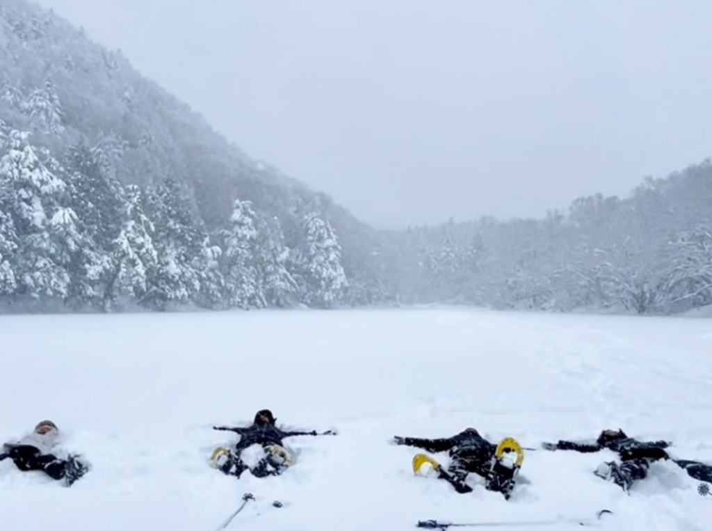 降りたてのふわふわな雪の上では、道なき道を行き⛄️、ときにはお尻を使って雪道を作りながら進みました。