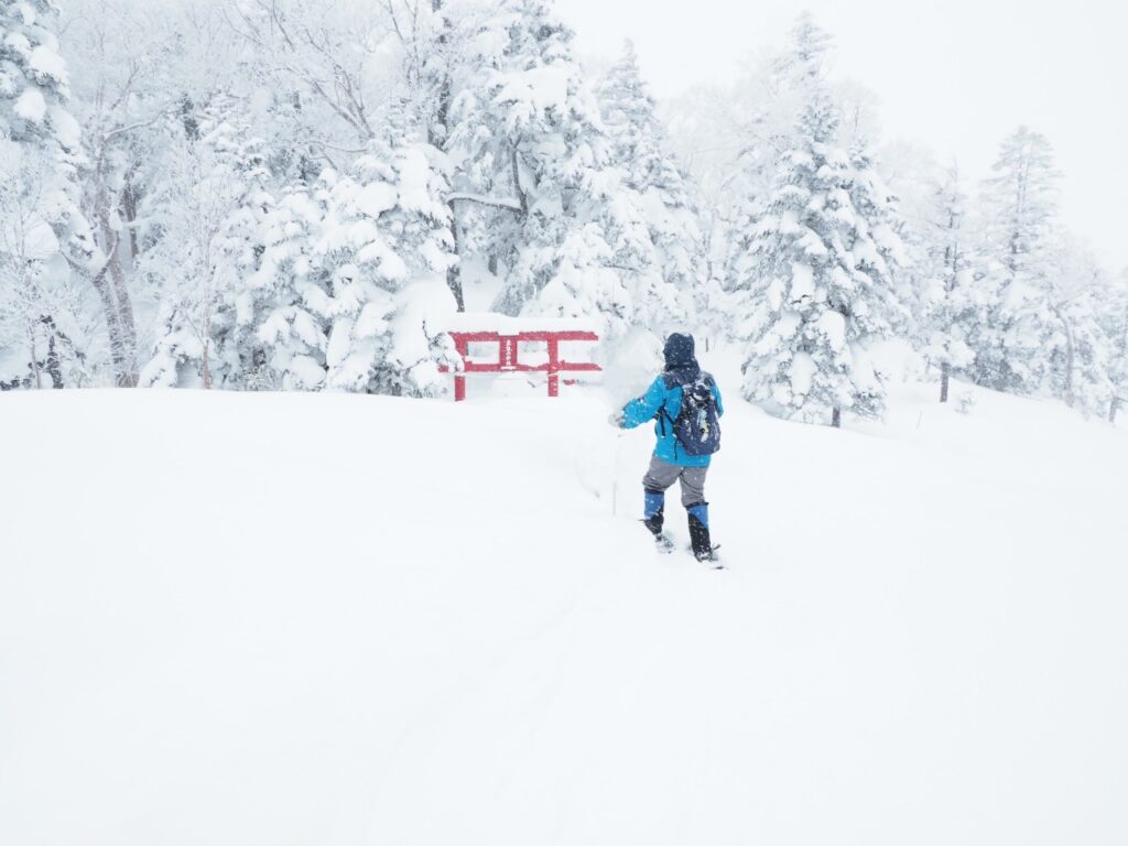 The striking red torii gate against the pure white landscape created a truly magical scene. ❄⛩❄