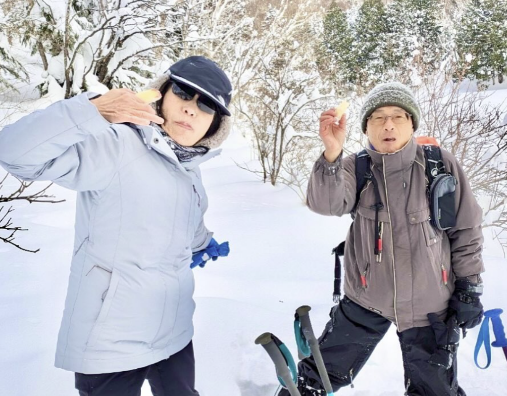 前回以上の積雪で歩ける範囲も広がり、お2人は木々の間を滑り降りるお尻滑りに夢中!🛷「また来たい」と嬉しいお言葉をいただき、明日は連続して山頂ツアーにもご参加予定です🏔️