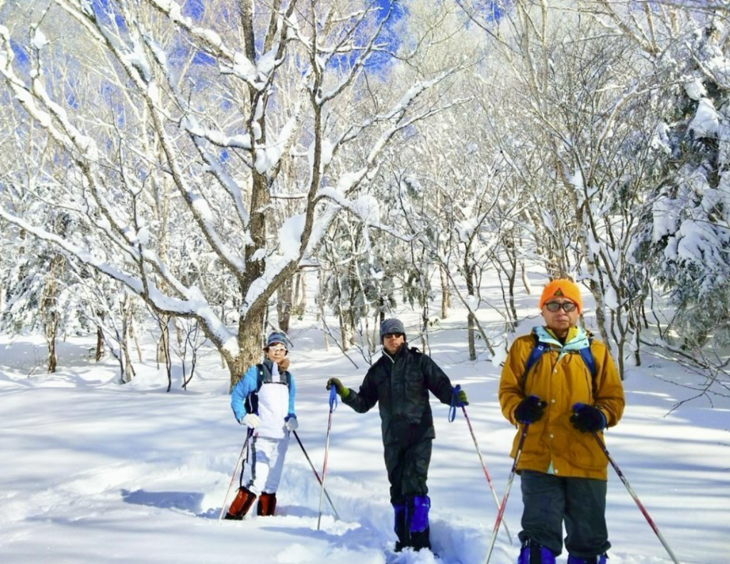 🌲Morning: 🇯🇵tour, we welcomed three guests from Shizuoka 🍵 and Kanagawa ⛩️. At first, they seemed a bit hesitant, but soon they were confidently mastering the art of sliding down the slopes on their bottoms! By the end, they were lying on nature’s snowy bed, gazing up at the vivid blue sky in awe. I even heard someone say, “The guide is having the most fun 🤭,” and to be honest, that’s absolutely true—I always enjoy myself!