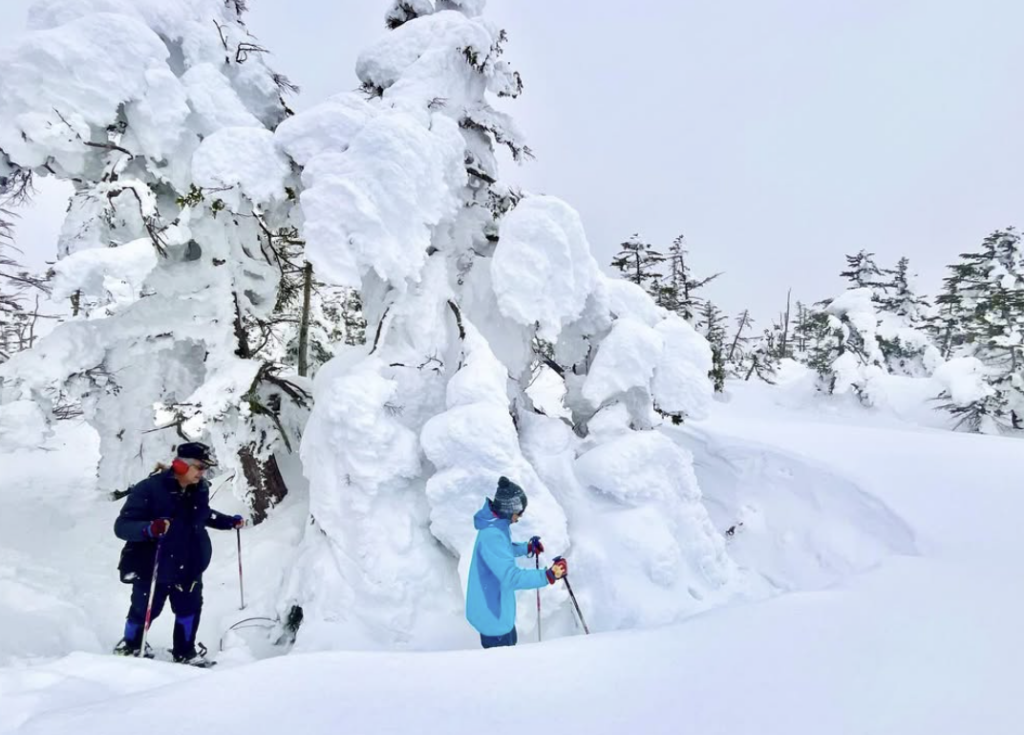 In the afternoon, we welcomed a lovely couple from Malaysia🇲🇾 on a tour of Mt. Yakebitai🏔️ To my surprise, this was their 10th visit to Japan—true Japan enthusiasts!😳 Following animal tracks🐾, we made our way to the summit area for an exploration of the stunning snow monsters. From nibbling on long icicles formed by the spring-like weather☘️ to using them as stirrers for hot lattes☕️, they experienced moments unique to this tour that can’t be found in the forest trails below!
