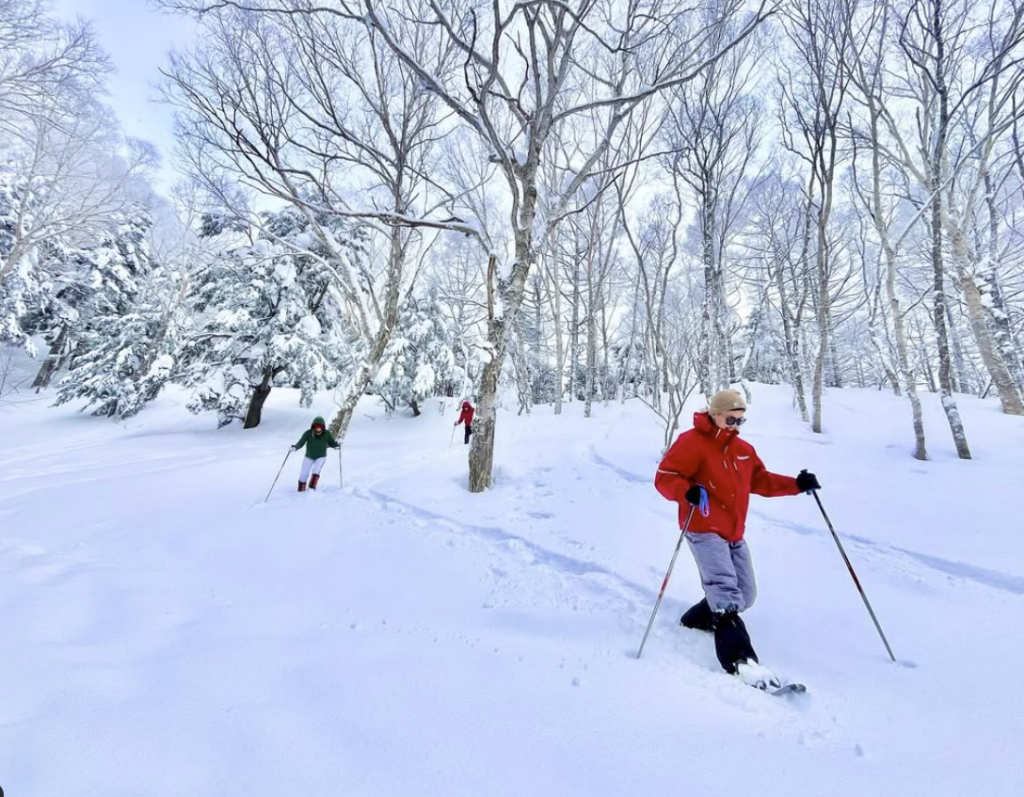 そんな幻想的な森をゆっくり歩いたり、お尻滑りでスピーディに下りたり、新雪にダイブしたり… 今日は全員が初めてのスノーシュー体験でしたが、「思っていたより簡単!」と皆さんとても楽しんでくださいました👏