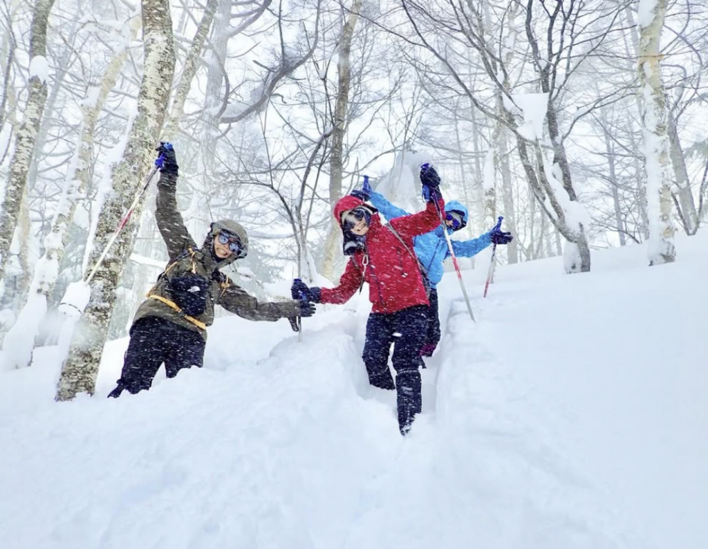 ガイドの身長の半分まで埋まる程の新雪を一緒に歩き切りました💪