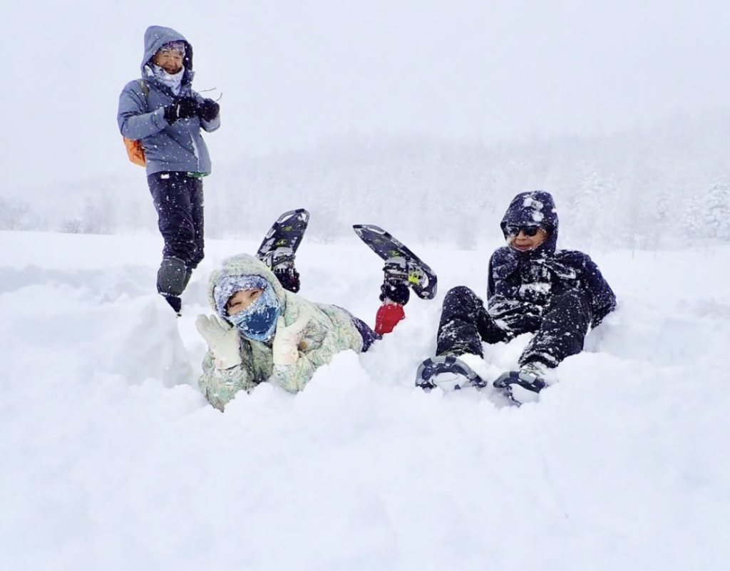 They dived headfirst into the deep, untouched powder 💨, took turns leading the group across a frozen lake, and raced down our long natural snow slides with excitement😆