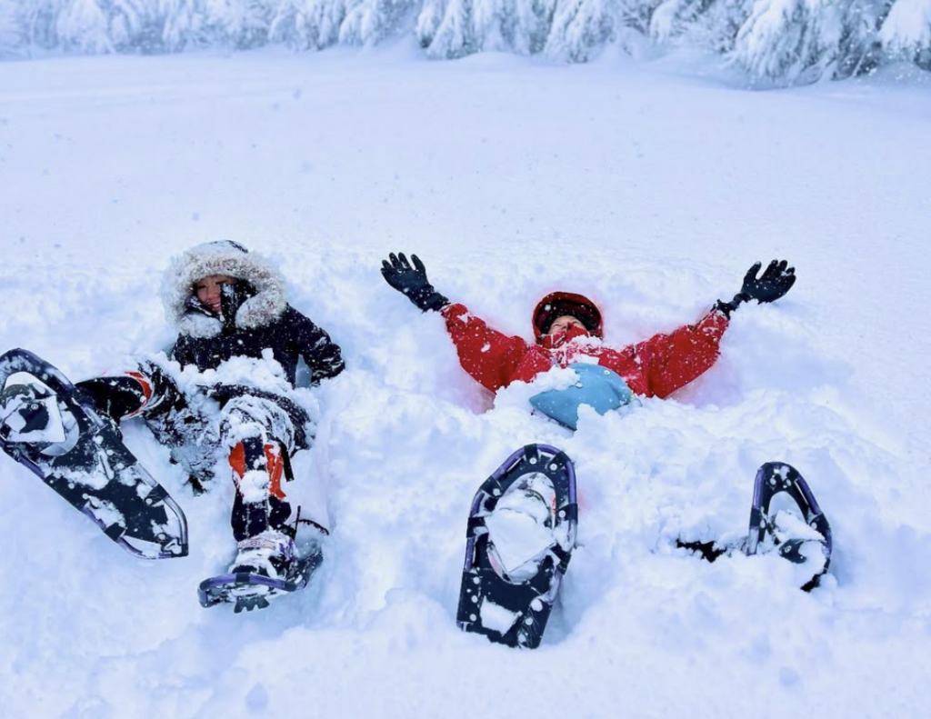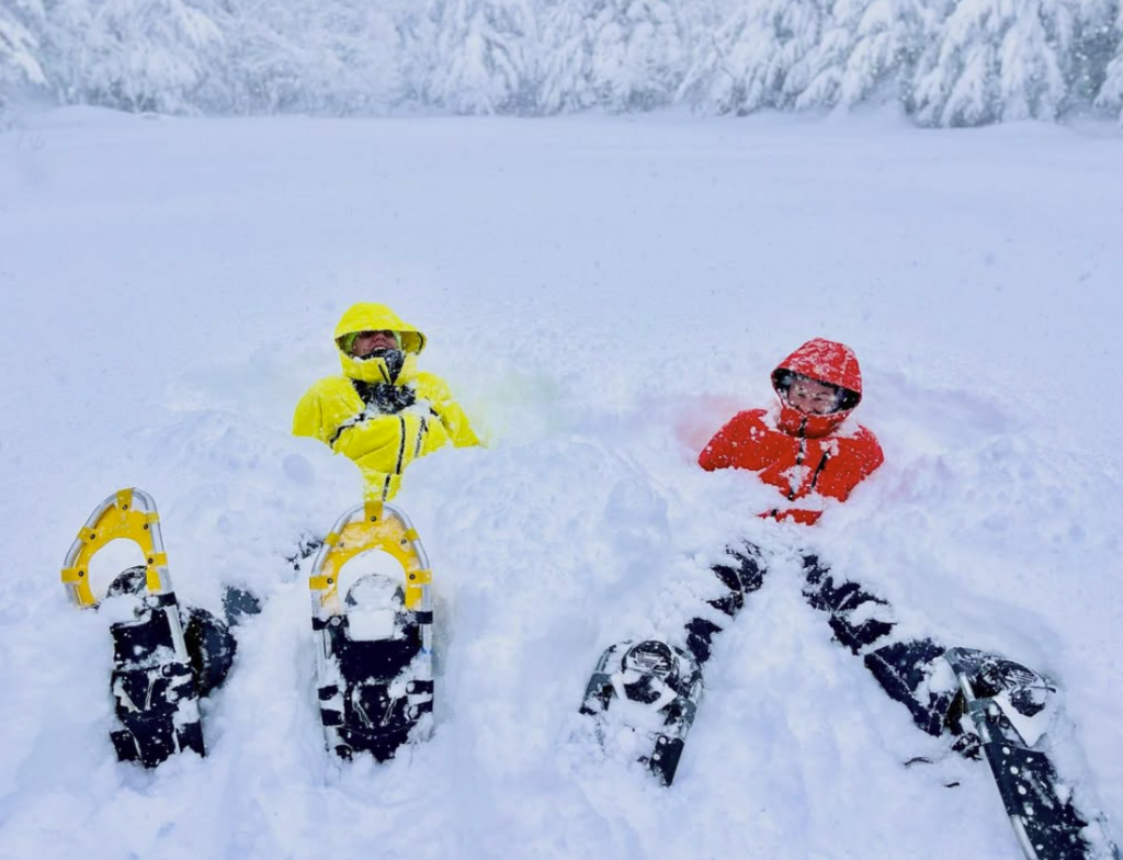 As they lay back in the snow, gazing up at towering trees covered in pure white, I couldn’t help but wonder—what were they thinking in that moment? ❄️